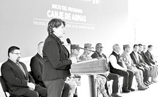 Desde la Plaza de los Mártires, en la ciudad de Toluca, donde se llevó a cabo el primer canje de arma, la gobernadora indicó que se intercambian armas por oportunidades y violencia por paz, pues reiteró que promover una cultura paz va de la mano respeto de-