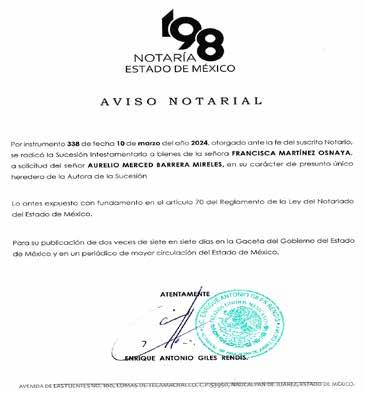 Conmemora Delfina Gómez Día del Notariado La gobernadora Delfina Gómez, destacó la labor de las Notarias y los Notarios del Estado de México, por su vocación de servicio uniéndose al Programa de Notarías Públicas Itinerantes y Caravanas por la Justicia Social con las que acercan el servicio a los municipios más alejados, donde han otorgado más de 4 mil 600 testamentos con ahorros por 27 millones de pesos para las familias. En la conmemoración del Día Internacional del Notariado, informó que dicho número de do-