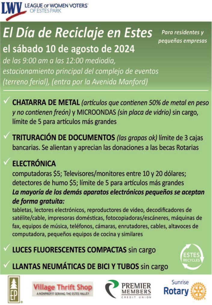 Alice Rueman and Marina Connors –Estes Recycles Day and opportunities to dispose of hard-to-recycle items in the Estes Valley
