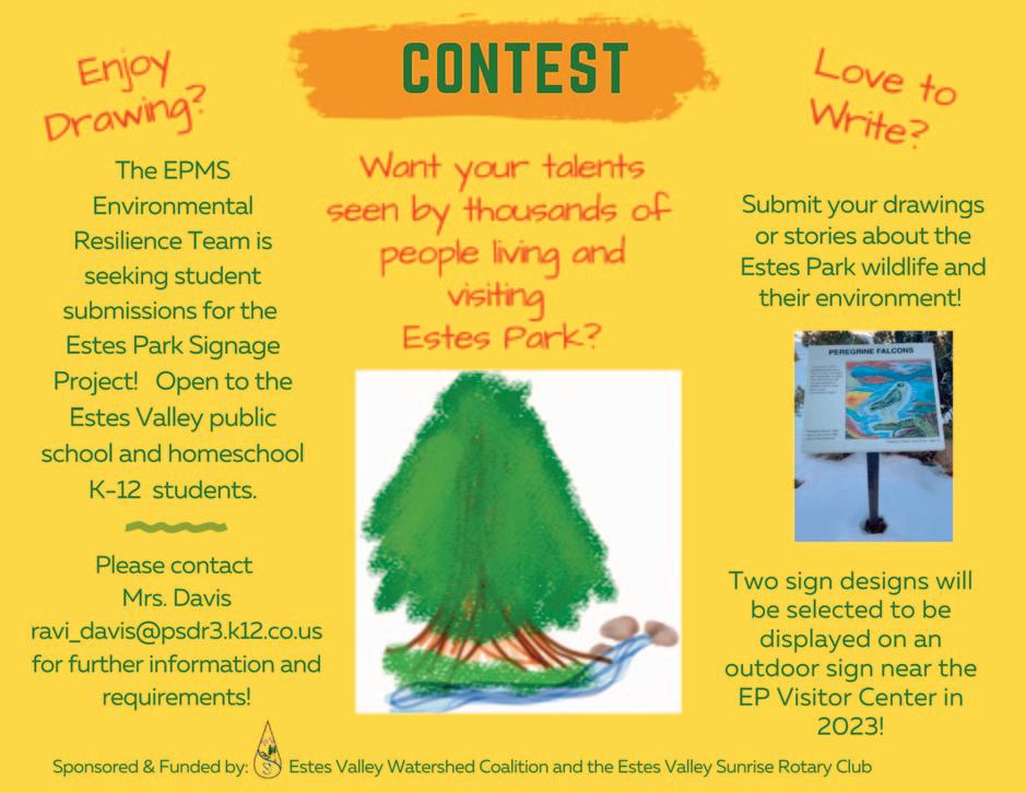 We are sincerely thankful to our sponsors who have helped us thru the past several years: MedX of Estes, Big Horn Restaurant, EP News, Village Thrift Shop, Reel Mountain Theater, Estes ProActive Fitness, and our members and donors. Your support is greatly appreciated!
