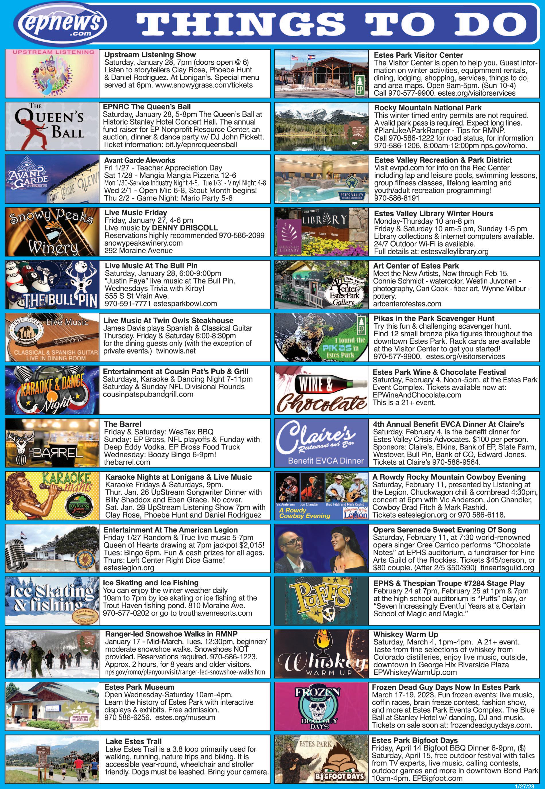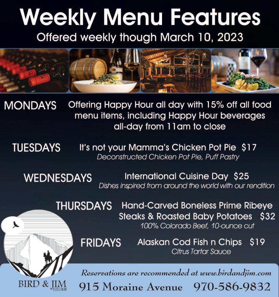 XXIII-1154 January 27, 2023 Estes Park News is printed weekly and is free online daily for the most current updates. FREE 40 PAGES
