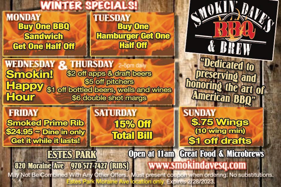 At the Legion: 850 N St Vrain, Estes Park