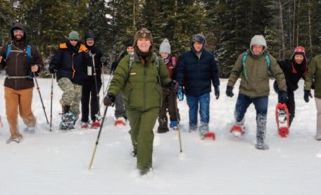 The ranger-led Beginner Snowshoe Walk is a two-hour exploration of the subalpine forest. No previous snowshoe experience is required, but the walk is considered moderately strenuous. Participants should have a baseline fitness level that allows them to snowshoe approximately one mile over hilly terrain at high elevations. Participants must be eight years or older and MUST wear waterproof boots. For more information, visit www.nps.gov/romo/planyourvisit/rangerled-snowshoe-walks. htm.