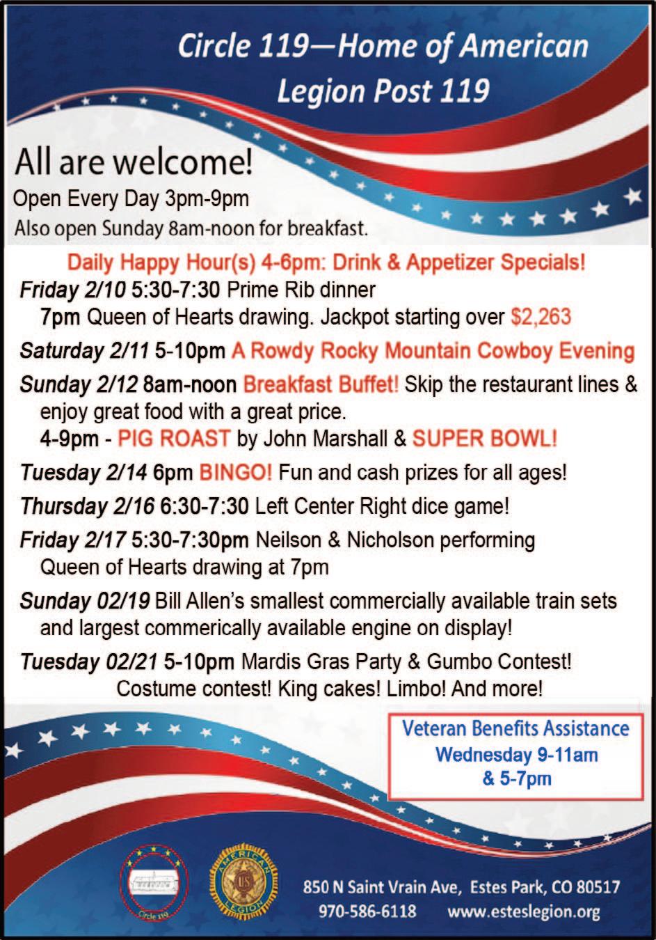 XXIII-1156 February 10, 2023 Estes Park News is printed weekly and is free online daily for the most current updates. FREE 40 PAGES
