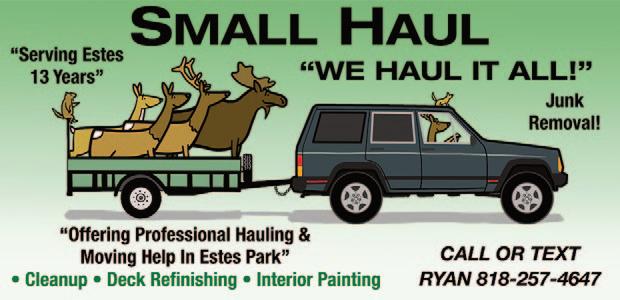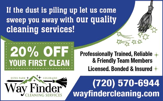38 » Friday, March 10, 2023 epnews.com HOT TUBS & POOL SERVICES PROFESSIONAL BUSINESS BUILDER Cory D. Workman, Au.D. Phone: 970-586-5255 1186 Graves Ave., Ste. B Estes Park, CO 80517 Fax: 970-577-7260 drcory@estesparkaudiology.com www.estesparkaudiology.com • Hearing Aids / New & Repair • Hearing Evaluations • Hearing Protection • Ear Care / Wax Removal • Dizziness / Balance HEARING & TINNITUS CARE 970-586-1685 Custom Homes, Additions, Kitchens, Baths, Historic Renovations, Remodels and Design Work Full service general contracting since 1998 Charles Santagati glaciercreekinc.com 1191 Graves Ave GENERAL CONTRACTOR FLOORING cont. MAINTENANCE/REPAIR SERVICES MAINTENANCE/REPAIR SERVICES SERVING ESTES PARK FOR 20 YEARS (970)-577-9855 parkflooring.com D DIAMOND D HANDYMAN SERVICE Home Maintenance & Repairs Snow Removal “Consider It Done!” Licensed & Insured Dave 303-877-2007 JR Services, LLC • Landscaping • Fencing • Lawn Maintenance • Retaining Walls • Flagstone • Raking • Snow Removal • Sidewalk & Deck Snow Shoveling and Cleanup Call 970-590-8015 or 970-689-1393