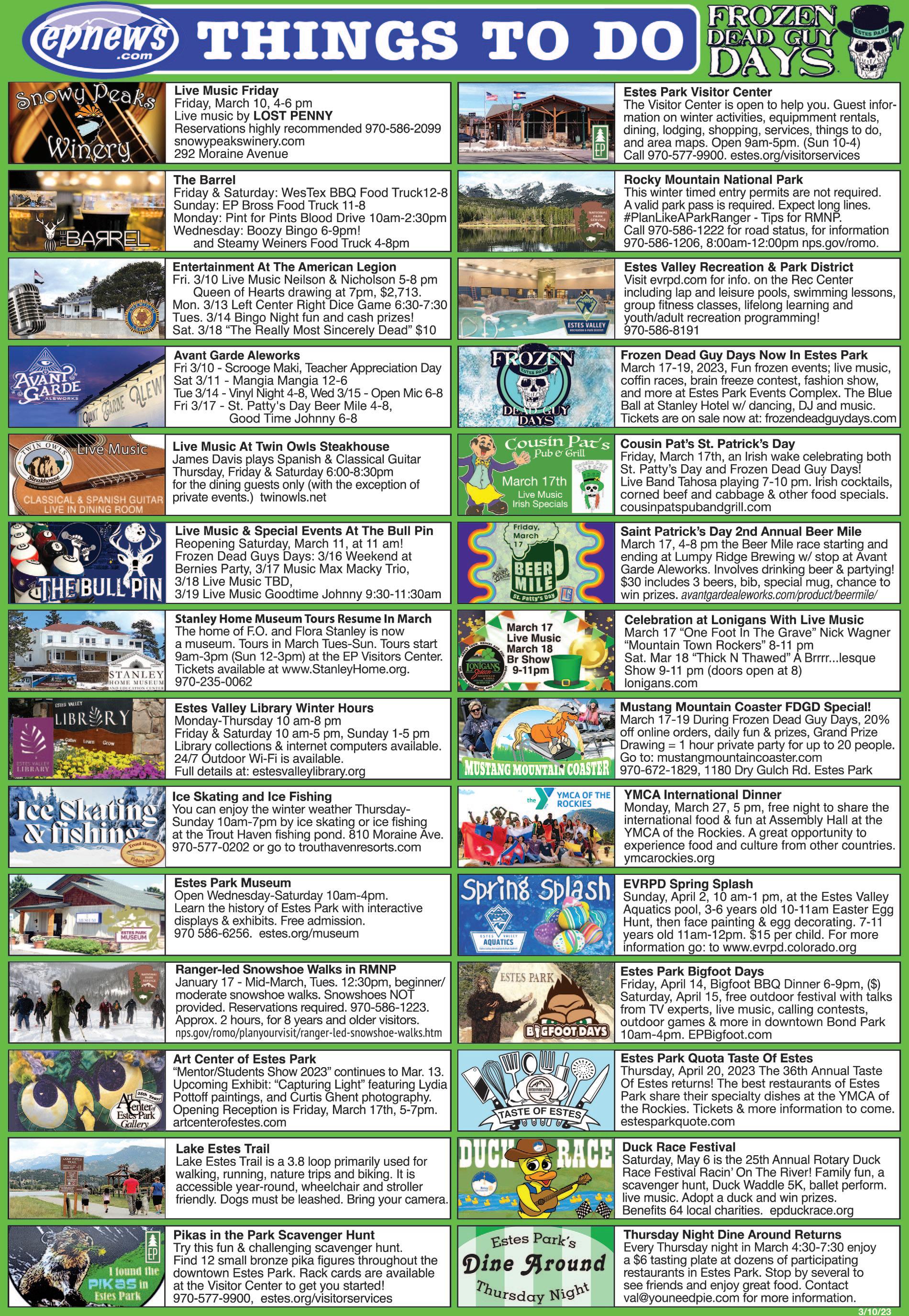 XXIII-1160 March 10, 2023 Estes Park News is printed weekly and is free online daily for the most current updates. FREE 40 PAGES