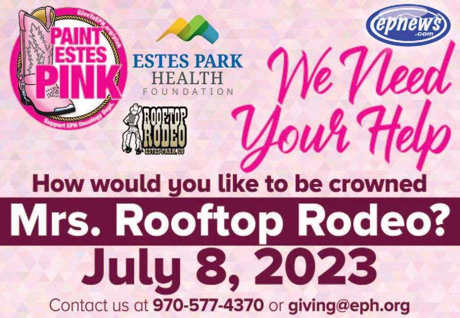 Crowns for the Care is looking for candidates to compete for Mrs. Rooftop Rodeo 2023. The contestant that raises the most money will be crowned Mrs. Rooftop Rodeo 2023 on Saturday, July 8th during Pink Night at the Estes Park Rooftop Rodeo.
