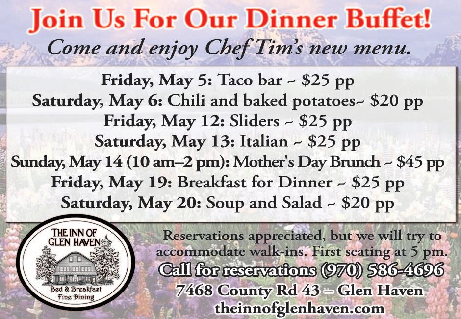Available June 1 thru Sept 30. Four miles from Rocky Mountain National Park, Wild Basin entrance.