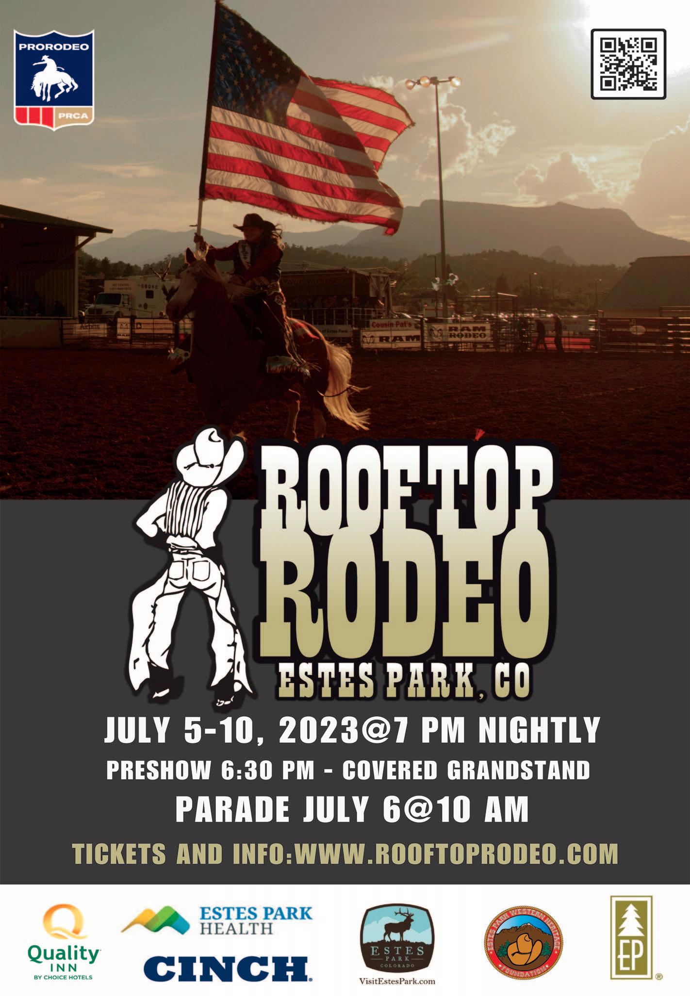Gates for Rooftop Rodeo open at 5 p.m. Wednesday, July 5-Monday, July 10, with the preshow beginning at 6:30 p.m. and the rodeo beginning at 7 p.m. For more information about Rooftop Rodeo, which is a Town of Estes Park signature event, or to order tickets online, log on to www.RooftopRodeo.com. Other ticket inquiries may be made by contacting the Town of Estes Park Events office at events@estes.org or (970) 586-6104.
