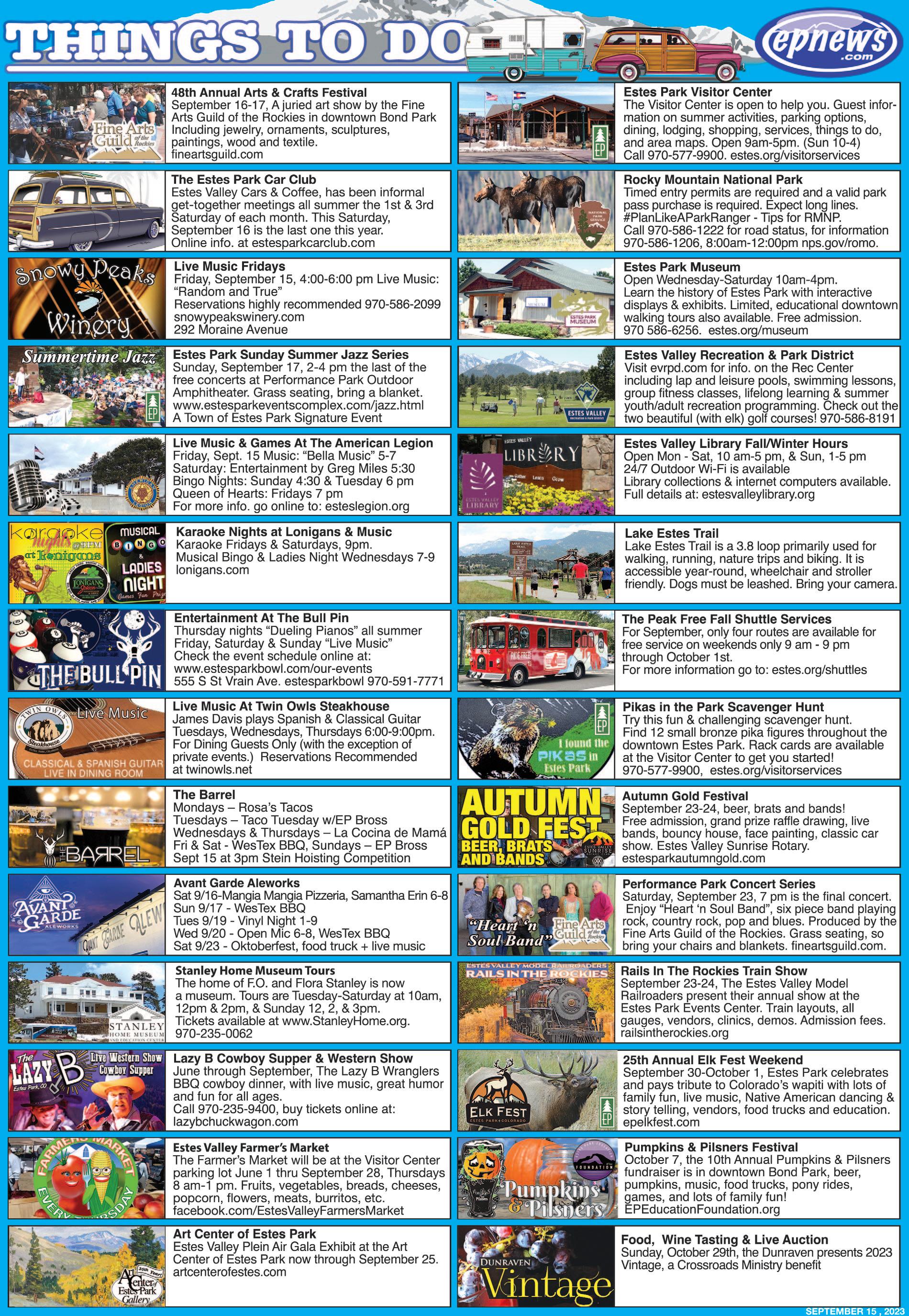 XXIII-1187 Friday, September 15, 2023 Estes Park News is printed weekly and is free online daily for the most current updates. FREE 48 PAGES