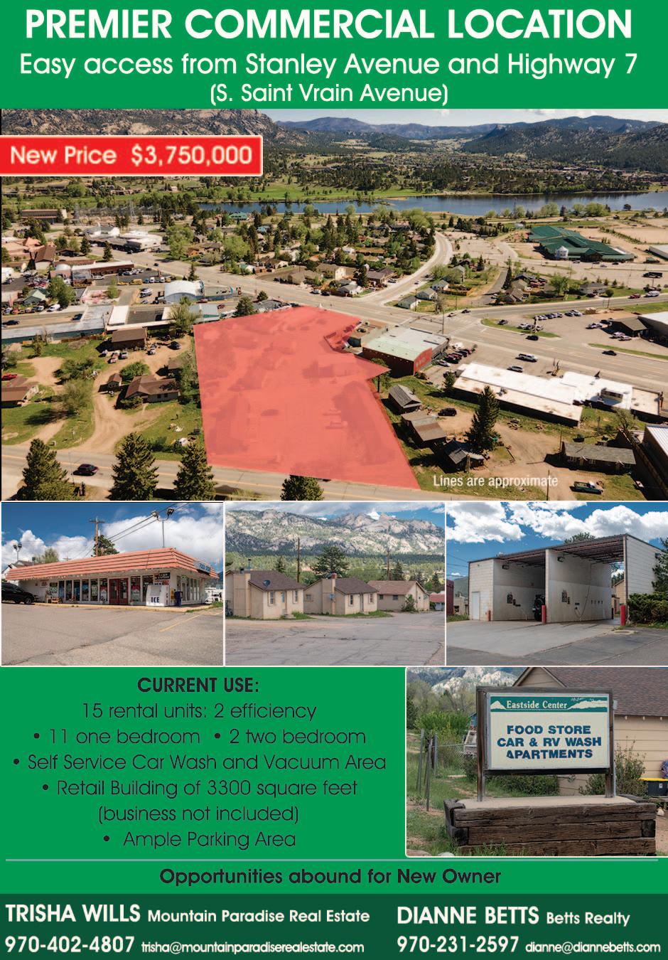 Office Services, Investment Center of Estes Park, Inc., Matt and Cristie Ram beau, Smokin’ Dave’s, State Farm Insur ance, Quality Inn and Estes Park News.
