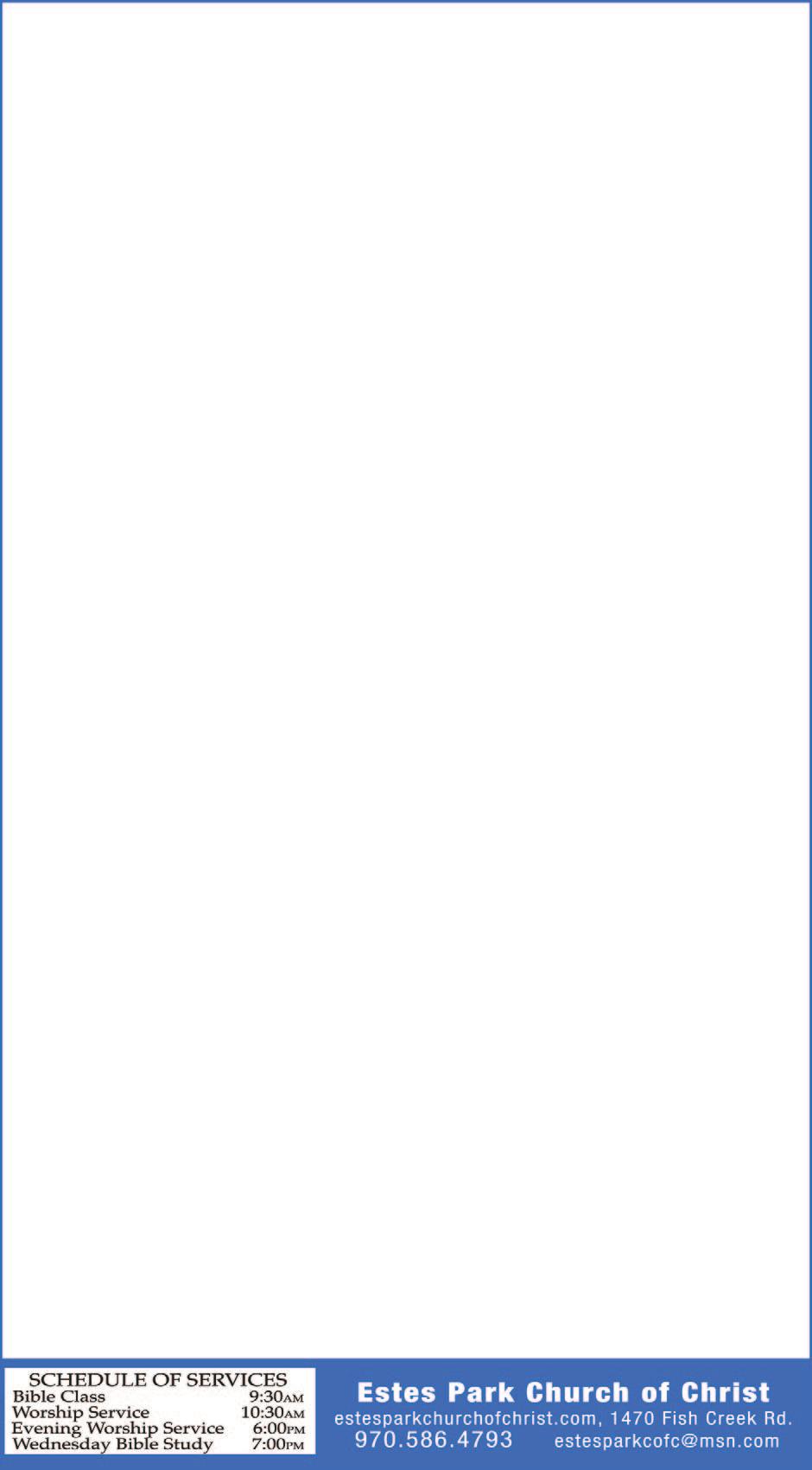 Office Administrator Presbyterian Community Church of the Rockies, Estes Park, CO seeks office administrator. Primary responsibilities include general ad ministration; preparation and distribution of publications and correspondence; coordinating use of church building; assisting members and visitors. Qualifications include experience in mid to upper-level ad ministrative work; proficient computer skills including Microsoft Publisher and Word, other software and Internet applications as needed; organizational skills and attention to detail; ability to work as a team mem ber; friendly, caring, and helpful per sonality; and ability to observe confidentiality. Position is primarily in-office, Mon thru Thur 9:00 a.m. to 3:00 p.m. Remote work required if church building is closed due to weather or other requirements. Salary $24,000 annually. Start date as soon as available. For information about Presbyterian Community Church visit church website at www.pccrusa.org. For more information about the position, email pastor@pccrusa.org. To apply, send resumé and availability to pastor@pccrusa.org or postal mail to 1700 Brodie Ave., Estes Park, CO 80517. at The Estes Park is looking for Day and