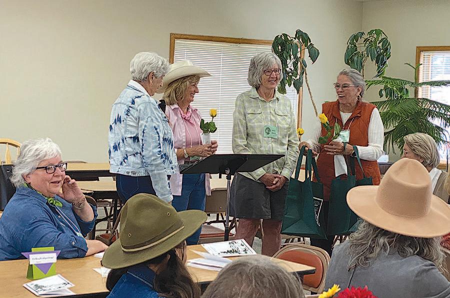 Our September Woman’s Club Meeting was moved to an indoor setting due to threatening weather, but the fellowship, lunch, and program were amazing. Everyone was certainly pleased to be to gether again. Many thanks to the Mount Calvary Lutheran Church for hosting our meeting. A number of the members enjoyed wearing their Western best, al ways fun to remember our nostalgic past. We inducted several new members and look forward to another successful year. The program presented by Jayne Zmijewski and her dog Kodi gave us in sight into the complicated role of Search and Rescue teams. Jayne and Kodi are able to perform many complicated types of searches due to her diligent training and Kodi's talents.