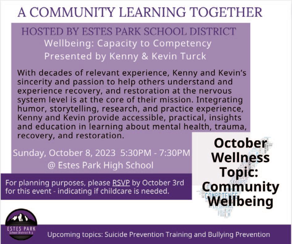 There will be a School District Board Candidate Forum held on Thursday, October 12th from 6-8 p.m. at the Town Hall Board Room. The public is invited. The forum will be recorded and live streamed on the town’s YouTube channel: youtube.com/@TownofEstes-