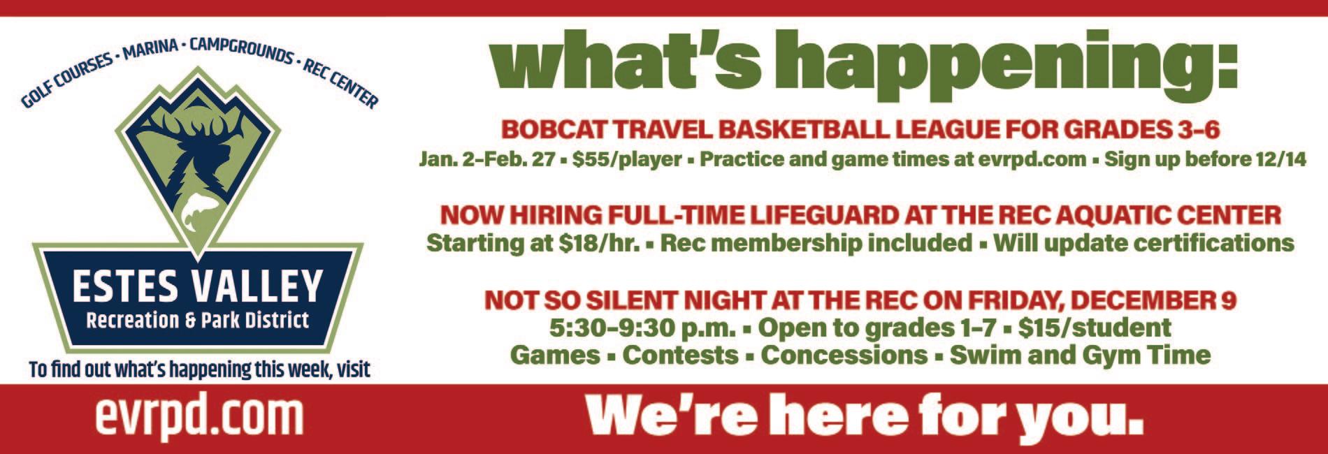 *Benefits for Part-time employees beginning Jan. 2023. Stop by and see us or call us at 970-586-6066 300 Riverside Drive Estes Park, CO 80517