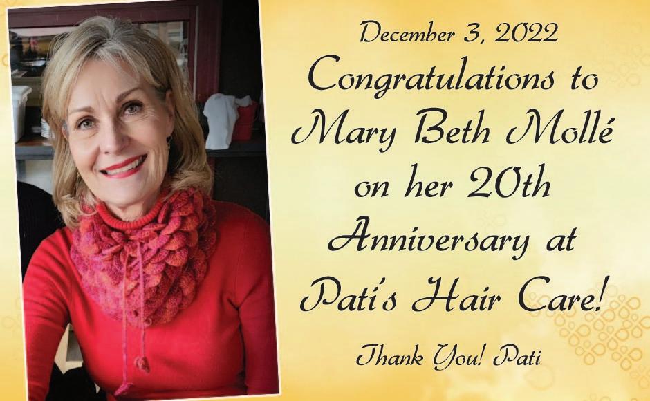 Pat’s life never strayed far from her greatest passion of all - her family. She lived for her sons, grandchildren, sis ters and extended family, and, of course, her students who empowered her to enlighten the valley’s minds for over 20 years. Family always included the dogs that were ever present in Pat’s home. Dating back to Grover, an itin erant black lab, followed by Willy, Rudy, Marley, and the infamous Abbey.