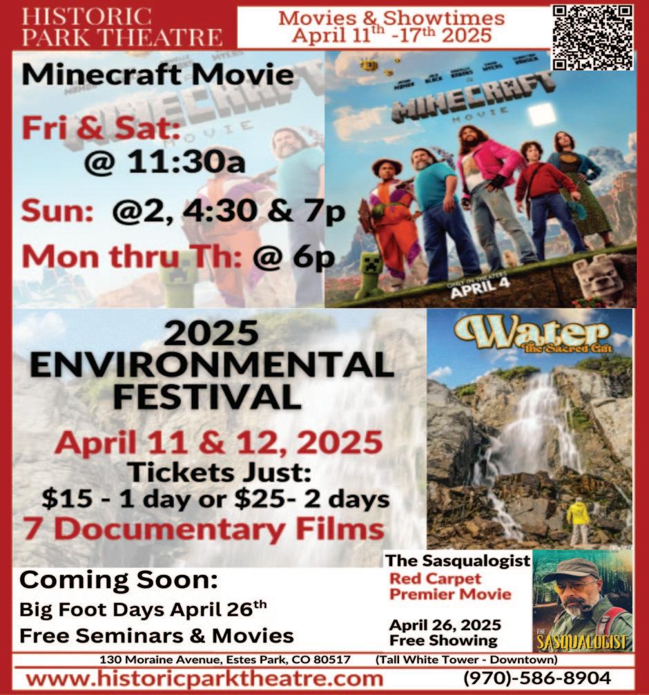 The Estes Park premiere of this feature film will be held at the Historic Park Theatre at 7 p.m. There will be a Q&A session with the stars and director, poster giveaway, autographs and merchandise, and a “Walk Like Bigfoot” contest with prizes. Admission is free. View the trailer: https://www.thesasqualogist.com.