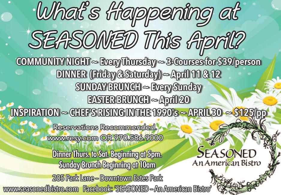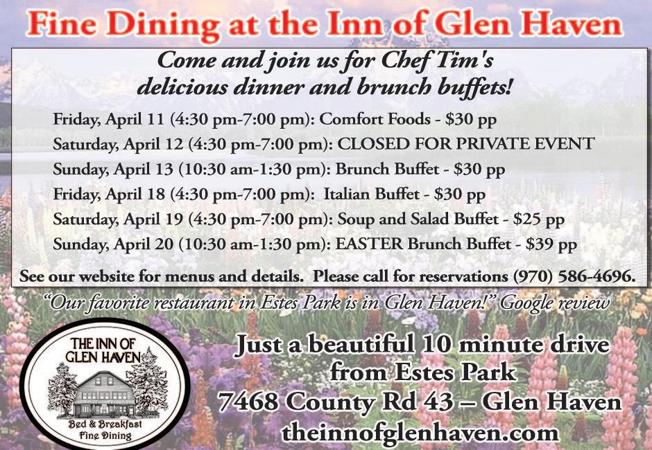 Saturday, April 12th at 6 p.m. – New Covenant Church, 1423 Country Rd. 84W (Wild Basin Rd & CO 7), Allenspark, CO