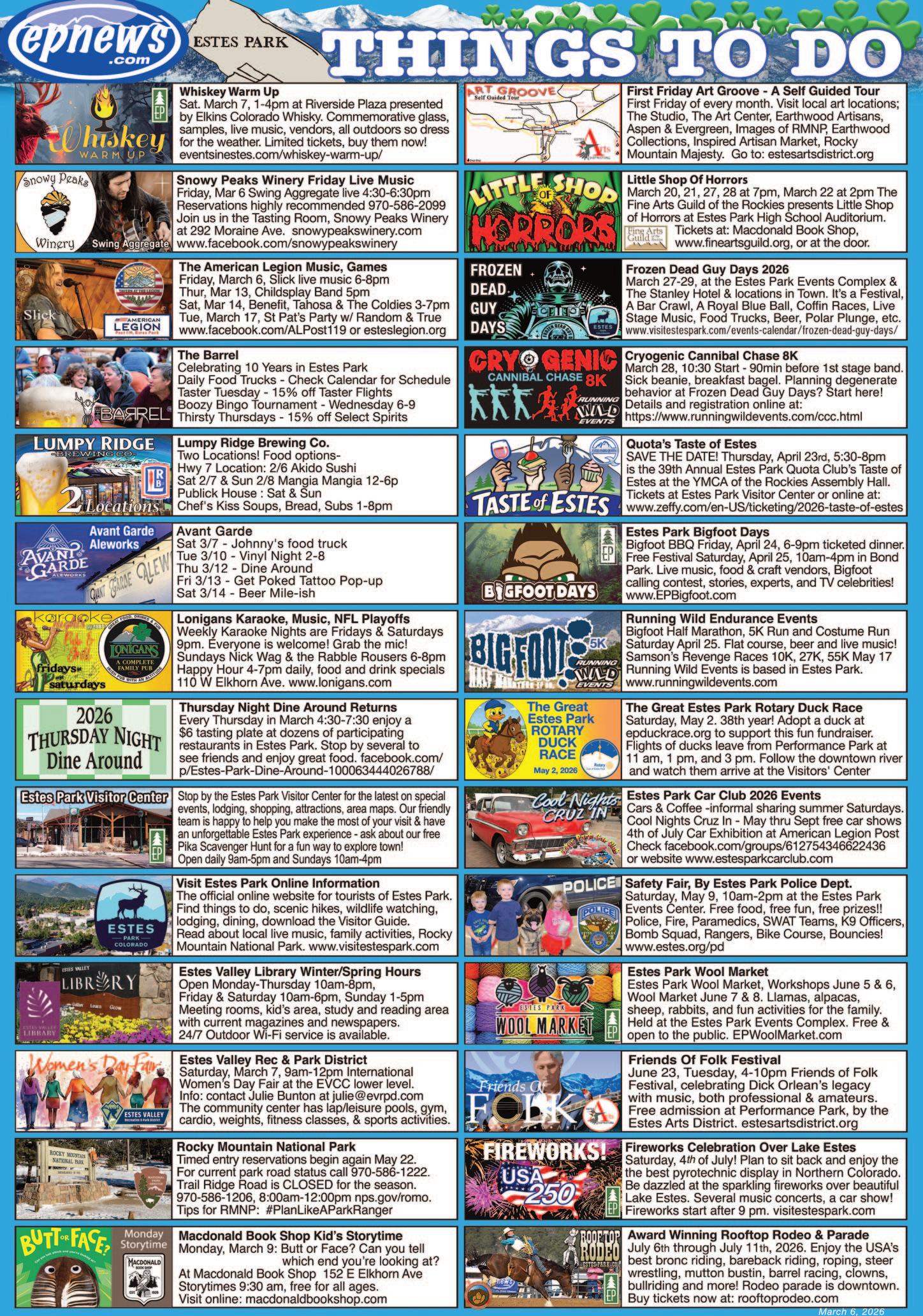 5,000 copies were printed this week, and distributed FREE to hundreds of Estes Valley locations including Allenspark, Glen Haven, & Lyons. A National Online Audience With Loyal Local Readership