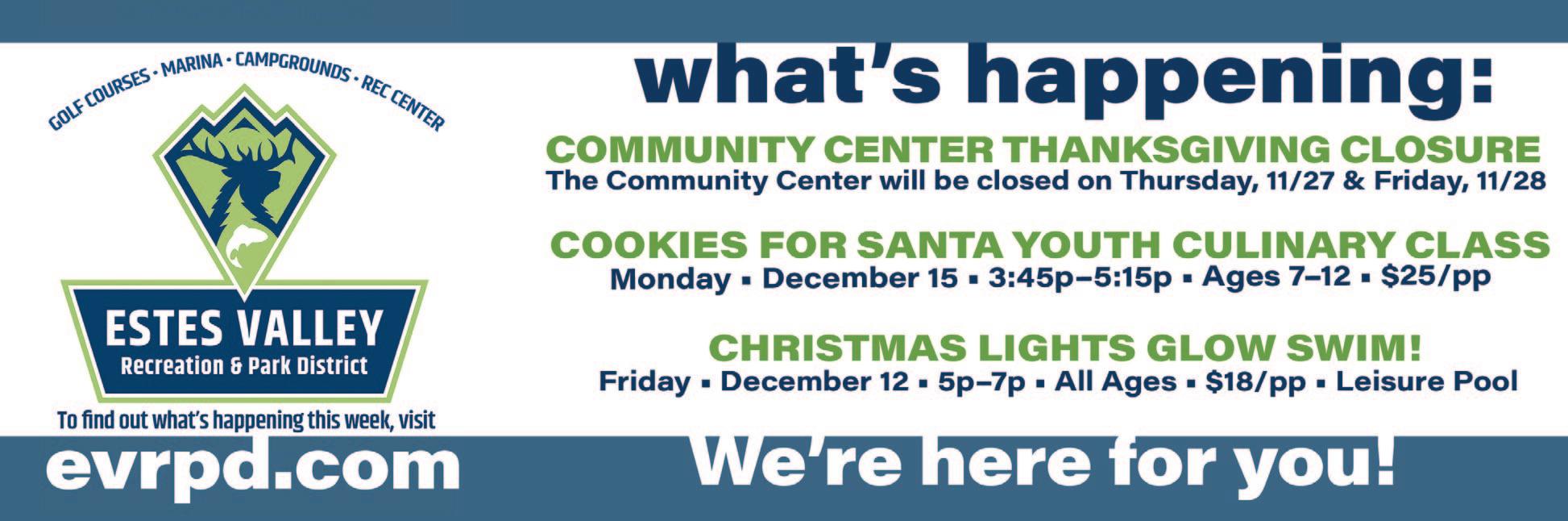at the Estes Valley Community Center Lower Level, 600 Community Drive, Estes Park, Colorado. Join us in person or online!