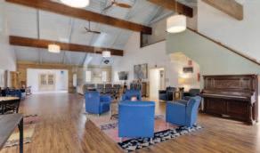 offers comfortable gathering spaces,