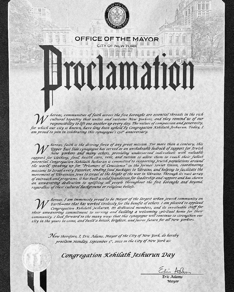 11 Proclamation from Mayor Eric Adams declaring September 5, 2022 to be Congregation Kehilath Jeshurun Day.