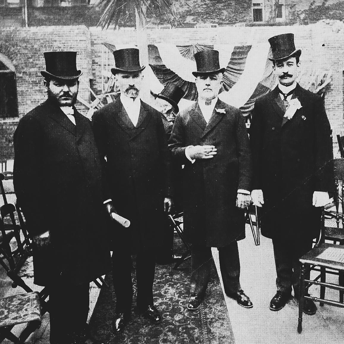 01 Laying the cornerstone, May 4, 1902; Left to right: Rabbi Meyer Joshua Peikes, Moses Davis, Isaac Cohen, Abraham Levy.