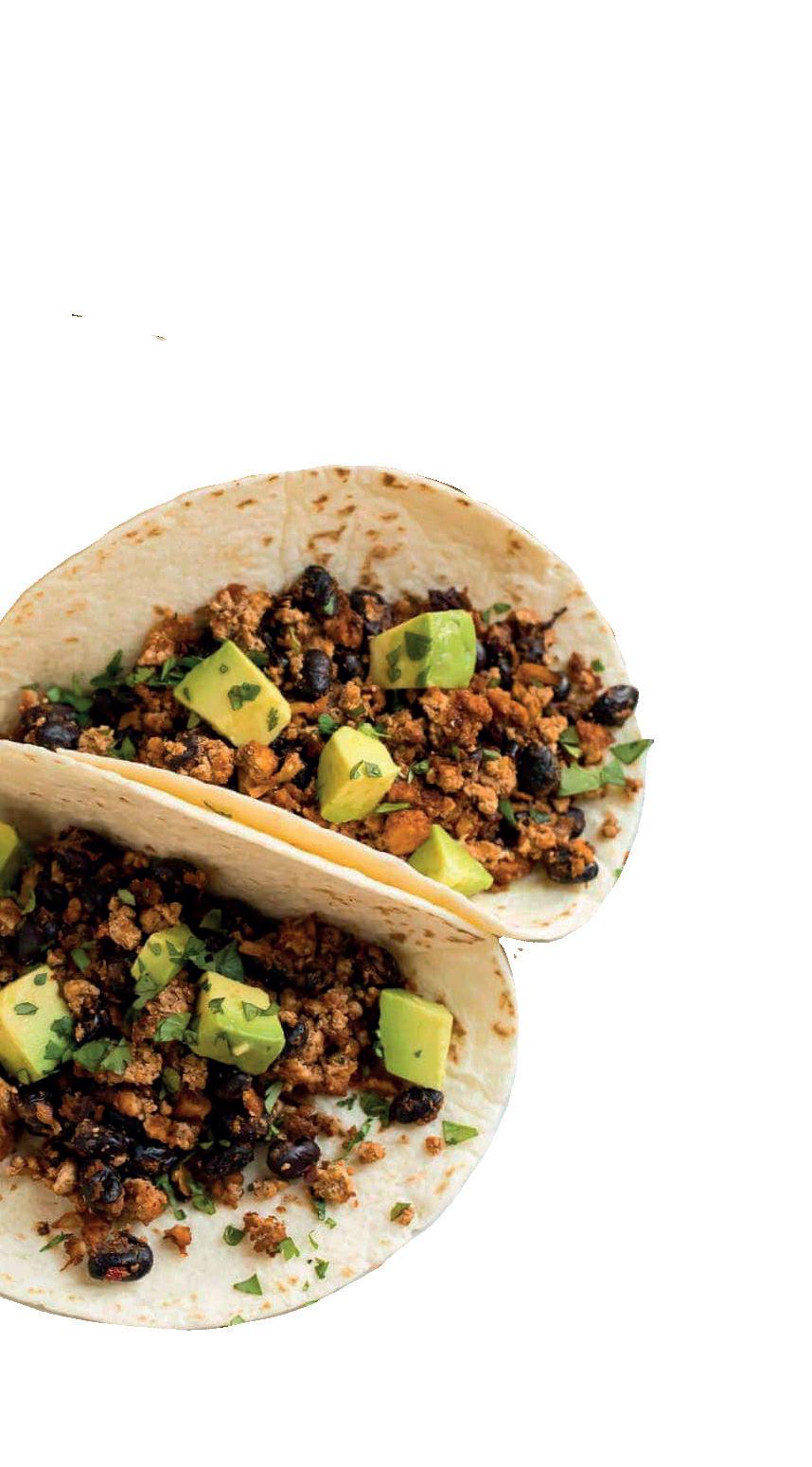 3. Colocar en la tortilla el tofu, encima la ensalada de tomate. Para la salsa, se agre gan todos los ingredientes en la licuadora: aguacate, cebolla, ajo, limón, agua y sal.