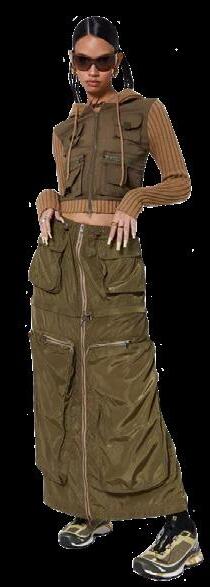 La tendencia cargo cada vez es más vista y exagerada, en muchos de los diseños fueron adheridos a faldas, shorts y chaquetas.