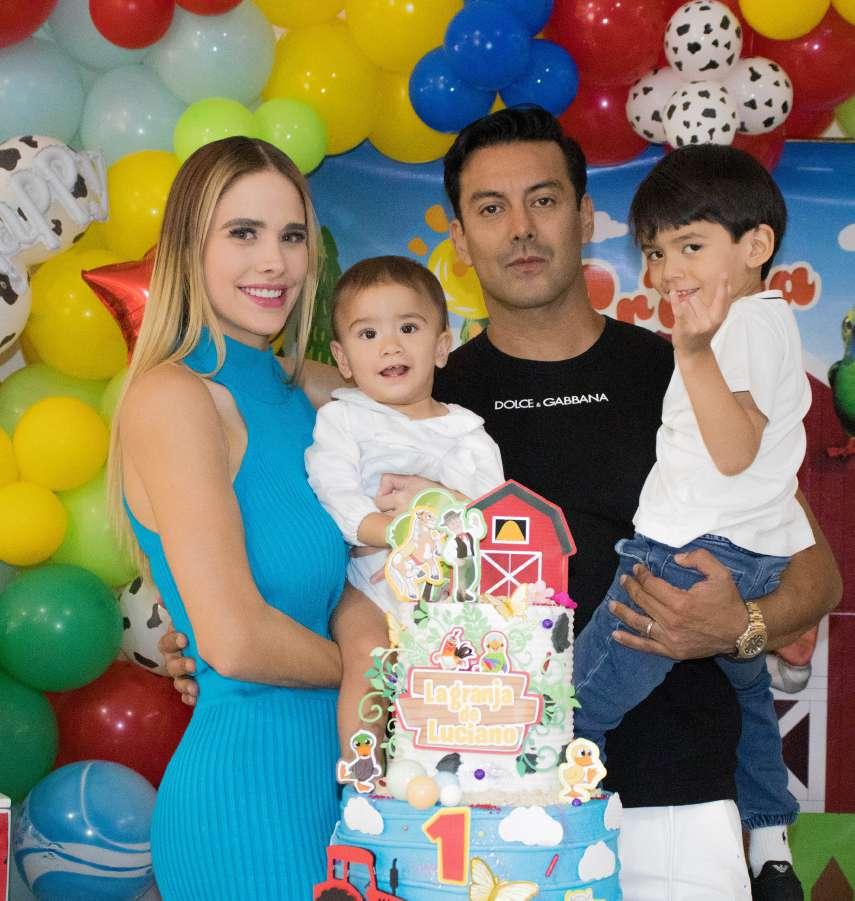 Luciano entre sus papás Grecia Esparza, Hugo Narcía y su hermano Huguito