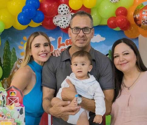 El feliz cumpleañero con sus abuelitos y su mamá Grecia Esparza