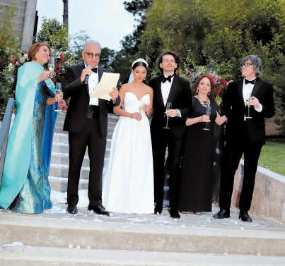 Los novios rodeados por sus padres: Federico y Maureen Lupo y René y Laura Simón