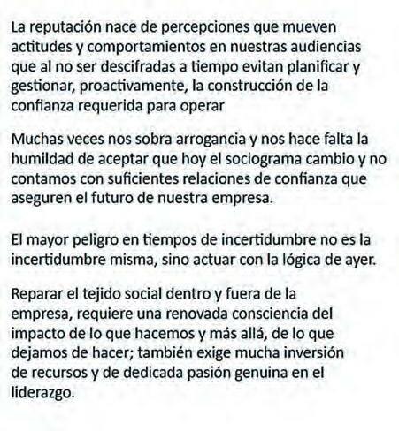 “Nunca prestamos un servicio sin que identifiquemos primero cuál es el beneficio que produciremos a nuestros clientes, y sobre la base de ello, logramos la construcción de relaciones duraderas y de confianza. Nuestra visión es siempre la de crecer junto con nuestros clientes, y colaborarles desde nuestra cancha para que puedan consolidar sus objetivos y metas”, apunta.