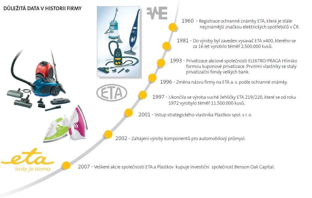Historie značky ETA sahá do roku 1943, kdy byly položeny základy výroby elektrických spotřebičů v Hlinsku.