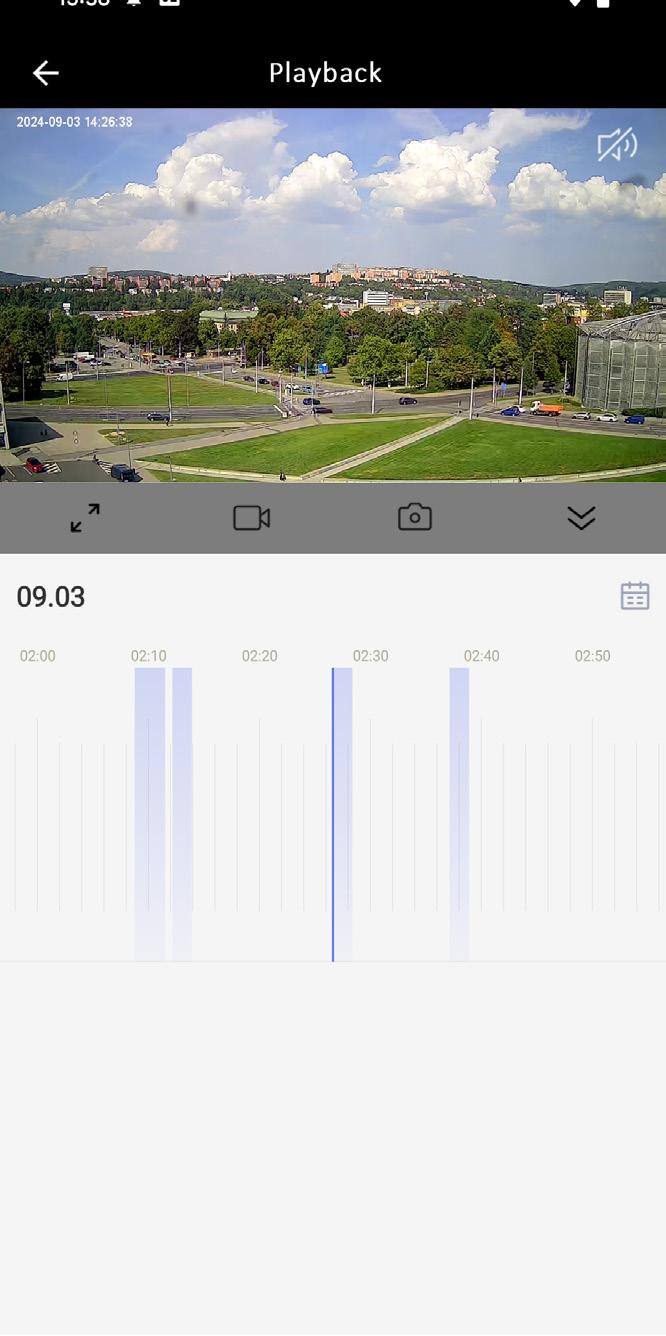 • Istniejące nagrania są oznaczone na osi czasu ciemnym kolorem. Przesuwając palcami (w prawo i w lewo), możesz odtwarzać poszczególne części wideo.