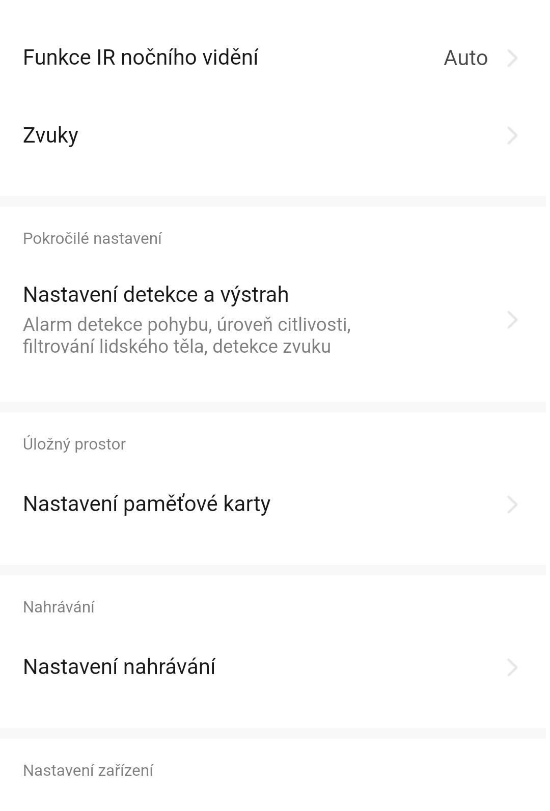 Pořízení videozáznamu (Nahraje video a uloží do galerie mobilu) Aktivace nočního vidění