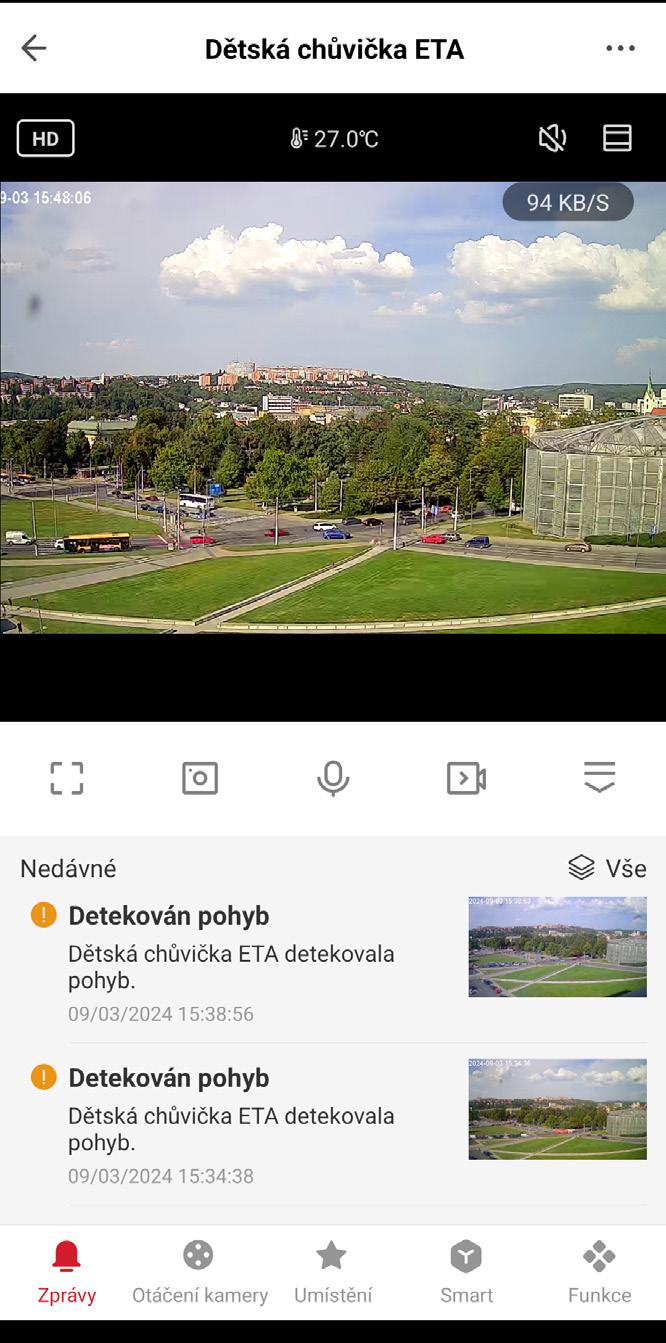 Pokud dětská jednotka zaznamená pohyb, vytvoří snímek a pošle notifikaci
