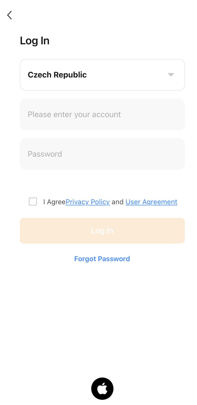 Aplikace umožňuje přihlášení také pod účtem APPLE kliknutím na ikonu