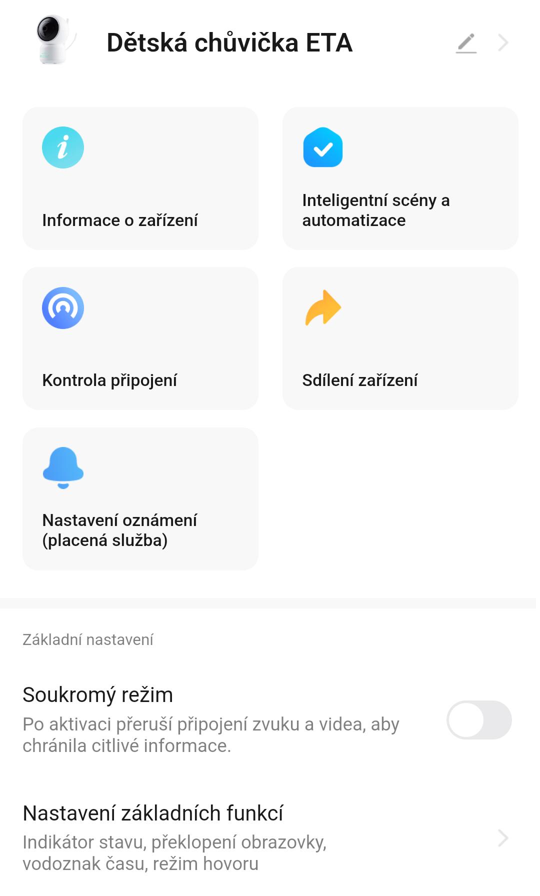 Přidané (spárované) zařízení (kliknutím přejdete do ovládací sekce aplikace)