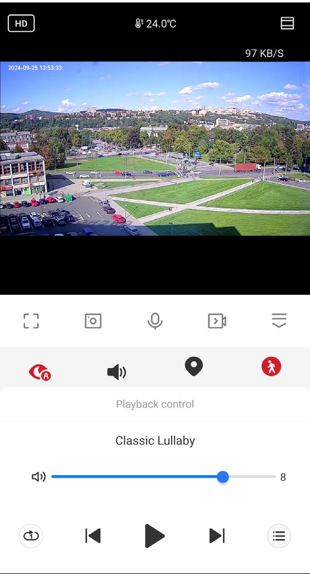 • Aby A) ręcznie nagrać wideo z bieżącej transmisji niani, kliknij ikonę .