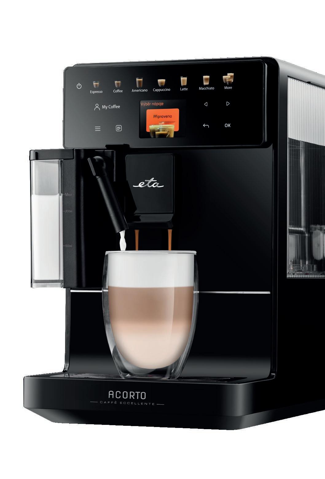 Na pomyslném konci cesty v přípravě kávy stojí kávovar. ETA Acorto se postará o dokonalý výsledek a připraví vám lahodné espresso, ale i krémové cappuccino či stylové caffé latté. Aby byl výsledek opravdu hodný baristy, dbejte na dostatečné nahřátí kávovaru i vašeho oblíbeného hrníčku. Nezapomínejte ani na pravidelné a důkladné čištění přístroje i mléčného systému na tvorbu pěny. Cesta k dokonalé přípravě kávy je jednodušší, než si myslíte. S automatickým kávovarem ETA Acorto se o tom můžete přesvědčit sami.
