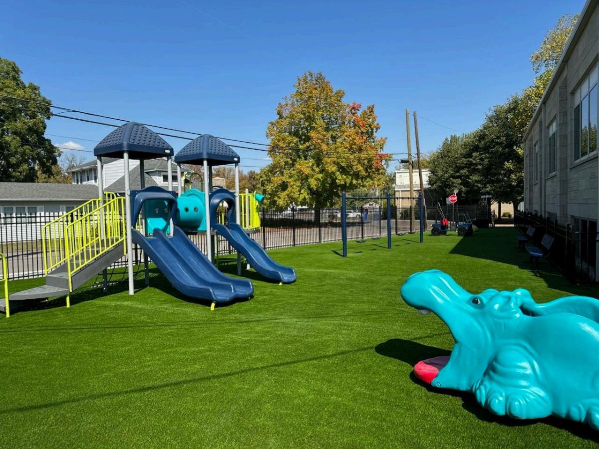 ● Play Zones: Soft, cushioned grass provides a safe play surface for kids.