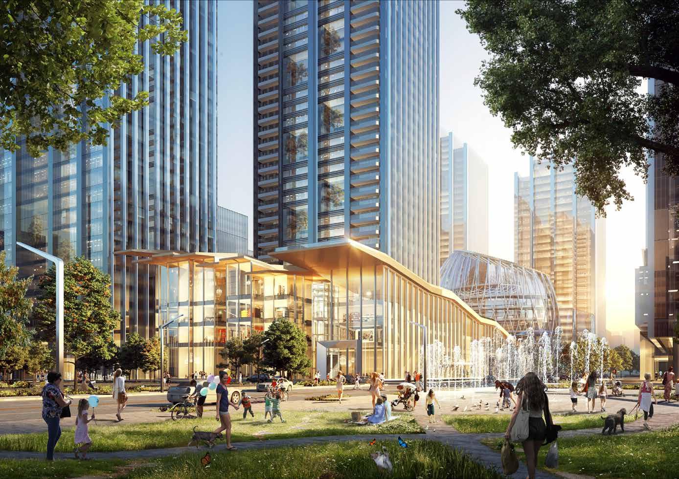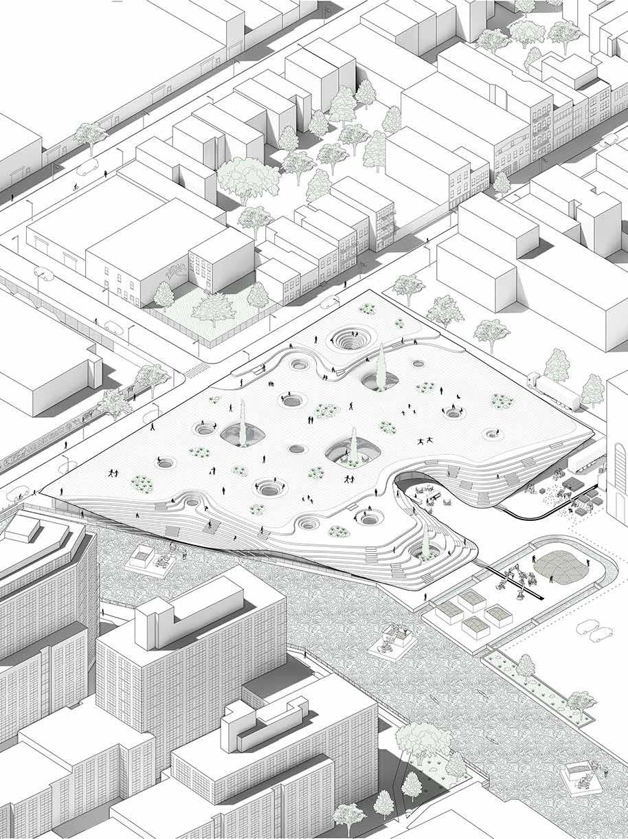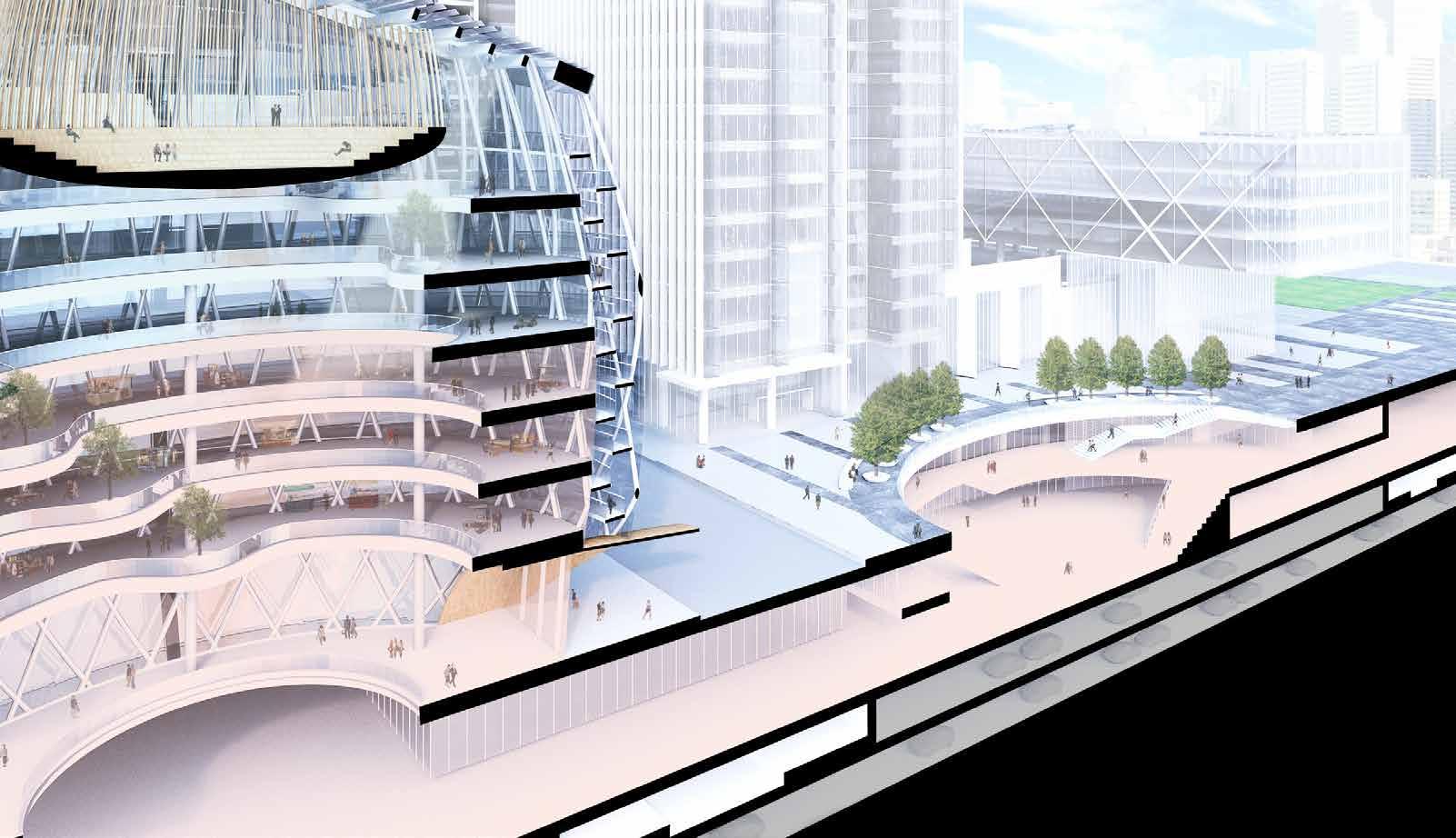 The central transit design consists of two monumental spaces: an amphitheater-like public area for active uses and a hive-like node with a massive atrium. Also included is a grand sunken plaza intended to house contemporary Chinese art and culture. Sustainable initiatives include the roofs of the multi-level concourses and large-floor plate tower podiums, which are planted for cooling, as well as storm water management. My responsibilities included design concepts, as well as modeling and updating the central 3D model, which was sent to a professional renderer for processing. I was also in charge of creating the primary section render of the structure and contributing to the design of the complete site plan and typical program plans for the surrounding project scope.