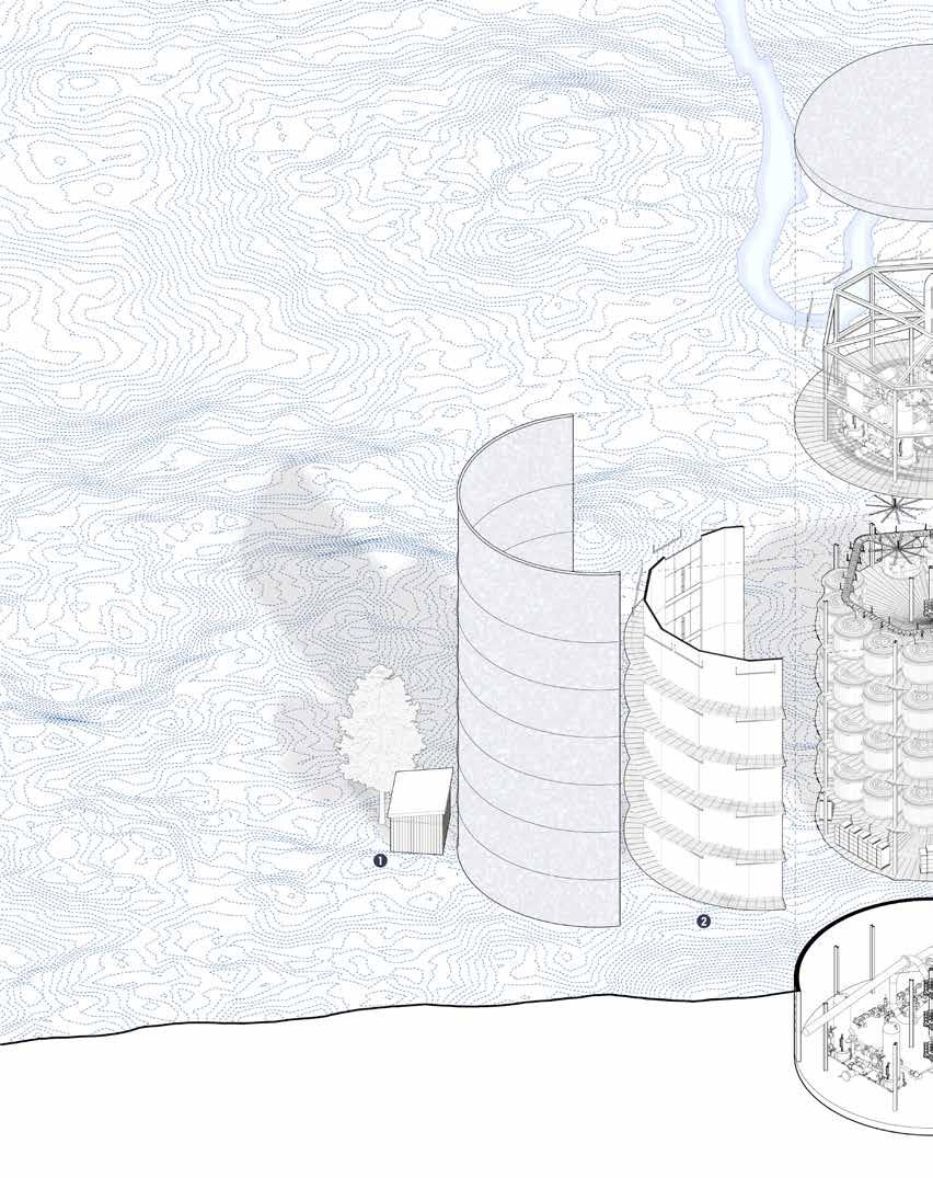 After losing its primary mining industry, Wilton introduced the Mt. McGregor Correctional Facility as a way to fill this economic void. Without a cultural and economic identity, Wilton and the prison it housed began to attract “bad neighbors” like two massive distribution centers, and relentless suburban sprawl that dominates what should be a vibrant downtown. Now abandoned, the prison provides an opportunity to bridge the digital and economic divide that plagues Wilton. By retrofitting an existing water tower on site into a collocation edge data center, their is potential to spur economic growth within Wilton by giving small businesses the technology and digital real estate they need to thrive. A data center decreases broadband latency, improves upload/download speeds, and will allow Wilton’s economy to take back the territory that lost to corporate neighbors like Target and Ace Hardware. This data center will also provide captured heat energy from the servers it houses, and transport this to the community as a means of negating any environmental impact it would have. The disruption will allow Wilton's citizens to gain economic independence, and will wither away at the corporate institutions and suburban sprawl that has become characteristic of the town. In their place will be community gardens and markets that act as an outlet for Wilton's occupants to repair the economic and social chasms that have developed over the last half century.