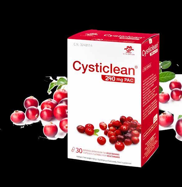 Για την υγεία του Ουροποιητικού Συστήματος STILVI PHARMACEUTICALS S.A. Λ. Ποσειδώνος 18, Καλλιθέα - 17674 Aθήνα Τ 210 9902924 / F 210 9902743 email: info@stilvipharma.gr / www.stilvipharma.gr ISO 9001:2015 CERT No. TB-030-02-100-00690Το προϊόν αυτό δεν προορίζεται για την πρόληψη, αγωγή ή θεραπεία ανθρώπινης νόσου. Συμβουλευτείτε τον γιατρό σας αν είστε έγκυος, θηλάζετε, βρίσκεστε υπό φαρμακευτική αγωγή ή αντιμετωπίζετε προβλήματα υγείας. Να μην γίνετε υπέρβαση της συνιστώμενης ημερήσιας δόσης. Να φυλάσσεται σε μέρος και σε θέση την οποία δεν βλέπουν και δεν προσεγγίζουν τα παιδιά. Τηλέφωνο Κέντρου Δηλητηριάσεων: 210 7793777. Αρ Γνωστοποίησης ΕΟΦ Cysticlean240mg Pac 91318/17-7- 2019 Cysticlean240 mg Pac pro β 116948/1-11-2023. Ο αριθμός γνωστοποίησης στον ΕΟΦ δεν επέχει θέση άδειας κυκλοφορίας από τον ΕΟΦ
