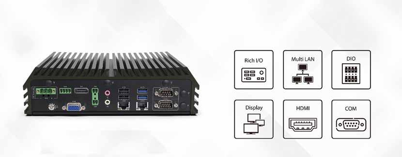 Utöver en port för 10 Gbit/s Ethernet har den två portar för 1 Gbit/s Ethernet med stöd för TSN. Behöver du Wifi, Bluetooth LE, satellit eller 5G kopplar du in dem via två oberoende PCI Express 3.0-bussar.