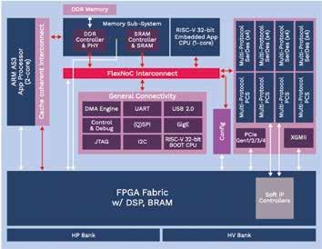 kluster och hårda block för bland annat kommunikation med omvärlden. Den har stora likheter med exempelvis Zynq-familjen från AMD-Xilinx.