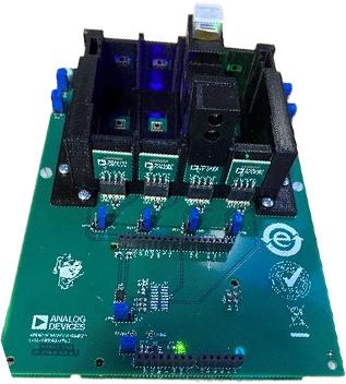 The CN0503 reference design was created to enable rapid prototyping of liquid analysis measurements with the ADPD4101. The CN0503 features the ADPD4101 as its core product, but adds up to four modular optical paths as well as measurement firmware and application software targeted for liquid analysis. The CN0503 interfaces directly with the ADICUP3029 board, which manages the measurement routine and data flow. The ADICUP3029 board can be connected directly to a laptop to view results in the evaluation GUI.