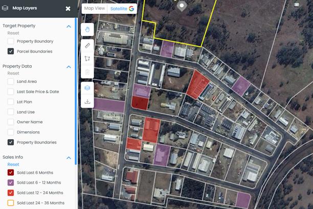 Recent Sales of Industrial Land are highlighted in the map below: