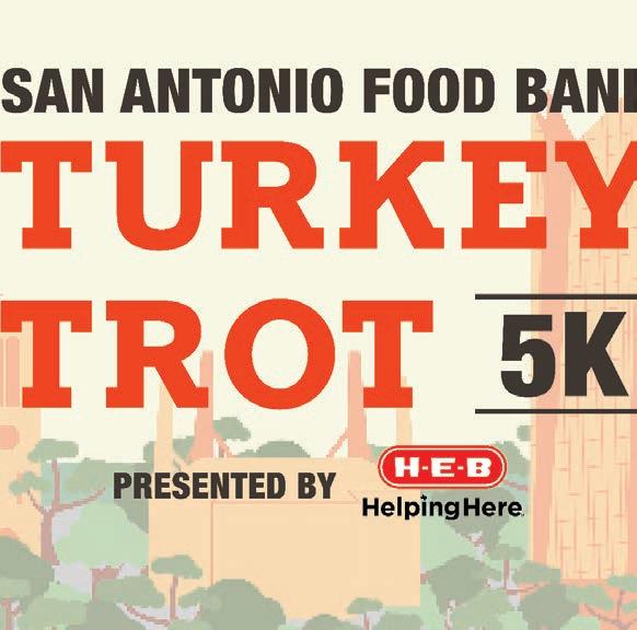 sacurrent.com | November 2 –15, 2022 | CURRENT 3 FIGHT HUNGER WITH EVERY STEP AT THE SAN ANTONIO FOOD BANK’S TURKEY TROT 5K RUN/WALK! safoodbank.org/turkey-trot To learn more and register, please visit #TurkeyTrotSATX THANKSGIVING DAY November 24, 2022 | 8:30 AM Starting and ending in front of the Commander’s House at H-E-B’s Arsenal campus, Turkey Trot is the San Antonio Food Bank’s annual 5K Run/Walk that raises funds to help feed families during the holidays. This year, you can participate in-person or virtually. Every registration provides a turkey for a family facing hunger this holiday season. REGISTER TODAY!